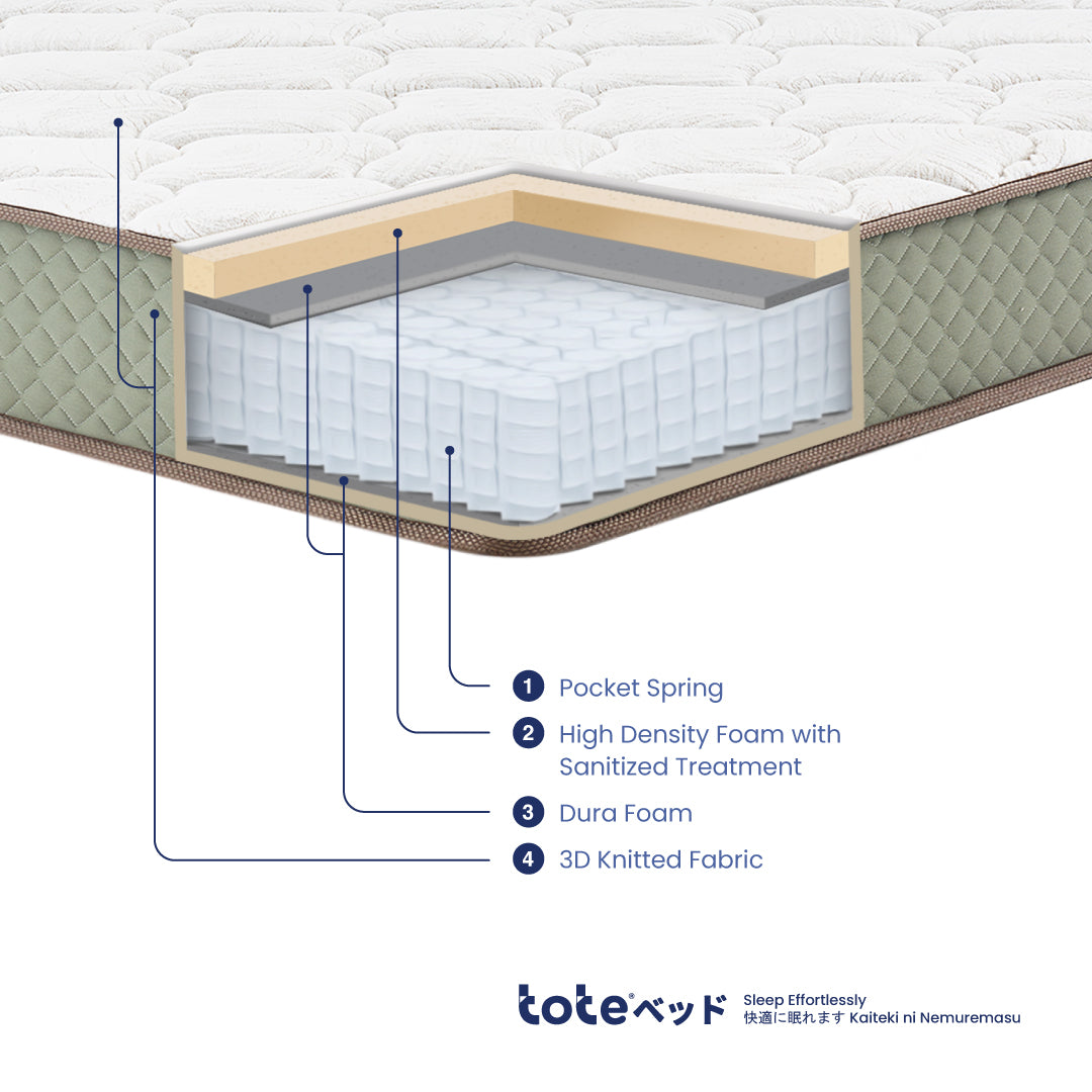 Teknologi support layer termutakhir dengan independent pocketed spring yang mampu meminimalisir guncangan pada kasur.